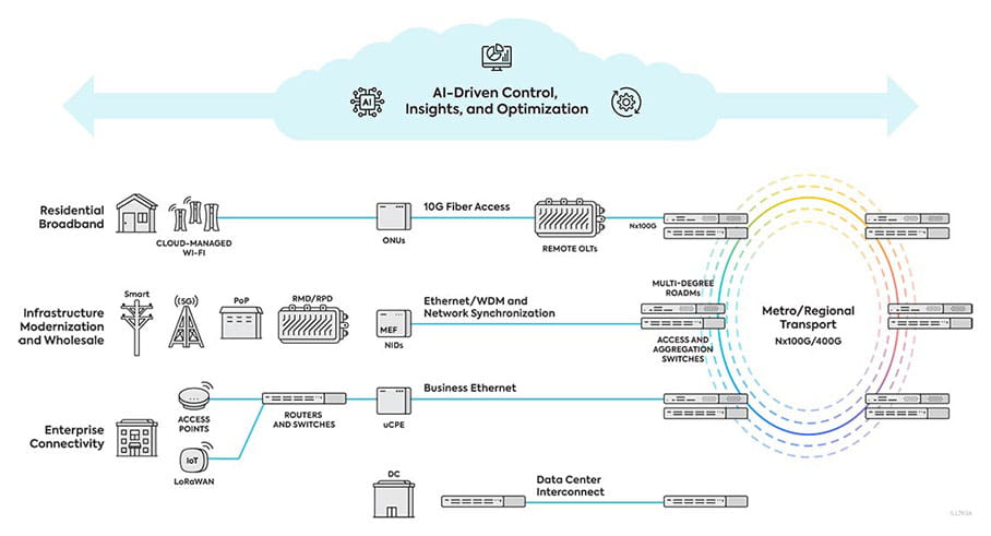 Our solutions are enabling cable MSs to monetize the smart home and deliver new triple-play services with mesh Wi-Fi 6, service delivery gateways, and AI-driven network insight. Our technology unlocks innovation and supports multi-domain service delivery with open, disaggregated SD-access solutions.