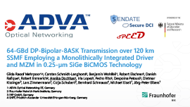 64-GBd DP-Bipolar-8ASK Transmission over 120 km SSMF Employing a Monolithically Integrated Driver and MZM in 0.25-μm SiGe BiCMOS Technology
